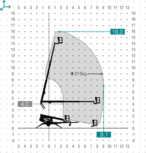 | 230V Steckdose im Korb, Motor Start-Stopp, Korbdrehvorrichtung mit 2 x 90°, ganzer Arbeitsbereich mit voller Korblast, hydraulischer Radantrieb |