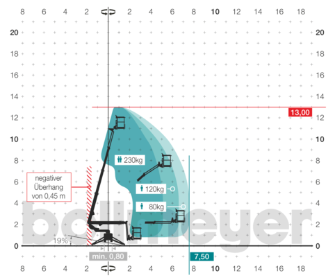 | leicht demontierbarer Korb, 230V Steckdose im Korb, Motor Start-Stopp, kabelgebundene Fernbedienung, sehr kompaktes Gerät, mit Korbarm |