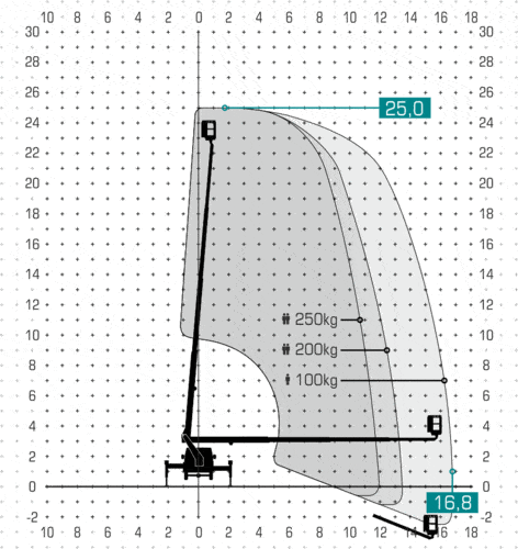 230V Steckdose im Korb, Motor Start-Stopp, elektr. Korbdrehvorrichtung 2 * 90°, voll variable H-Abstützung, Korbeinstieg über Treppe