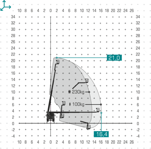 230V Steckdose im Korb, Motor Start-Stop, hydr. Korbdrehvorrichtung 2 x 80°, Bewegungs-Verlangsamung, Aufstellautomatik, Einfahrautomatik, volle Reichweite mit Senkrechtabstützung auch über das Fahrerhaus hinweg!