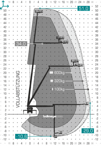 | Korbarm Länge + Ausschub | 12,85 m | |