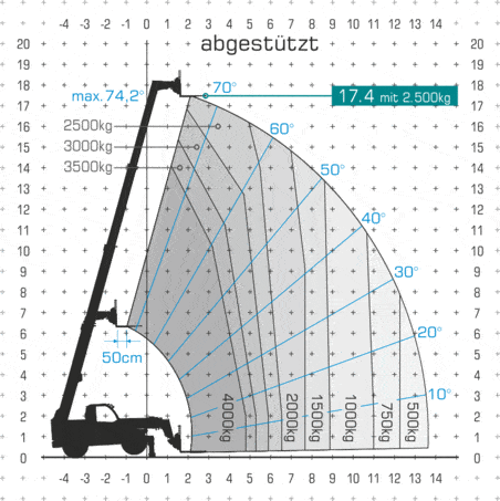 | max. Hublast bei voller Reichweite | 560 kg |